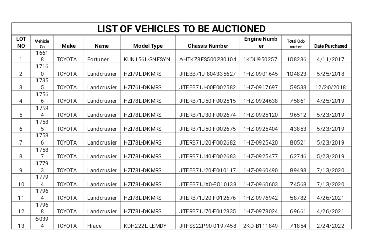 The International Committee of the Red Cross (ICRC) has engaged the service of EMMANUEL DE GREAT LIMITED as Auctioneer to conduct a Public Auction of certain Vehicles.